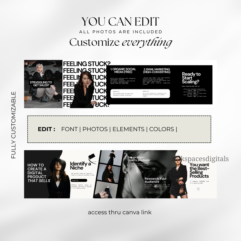 Seamless Carousel Instagram Templates Bold Black Carousel Posts Luxury Canva Carousel